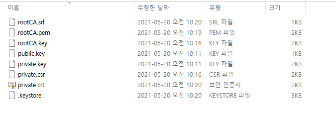 만약 키를 만들게 된다면, 이렇게 제공하게 되는데, 우리가 살펴봐야 할 것은 확장명이 crt와 key입니다.